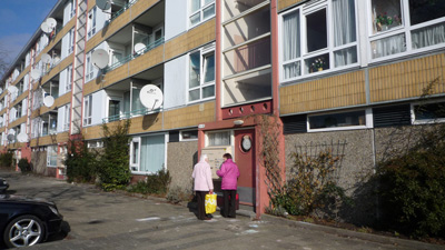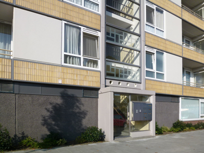 vorig project volgend project ![]() Voorzijde ![]() Nieuwe entrees ![]() Trappenhuispui ![]() Buitenzijde complex ![]() ![]() Oorspronkelijk erfscheidingshekken van beton bij de laagbouw, waar het patroon in de trappenhuizen aan is ontleend ![]() Interieur trappenhuis ![]() Interieur |