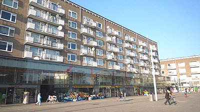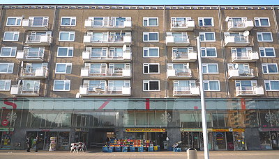 Bij eerdere renovaties zijn helaas witte kunststofkozijnen aangebracht met een beige paneel erin. De balkons werden lichtgroen en een donkerder groen geschilderd.